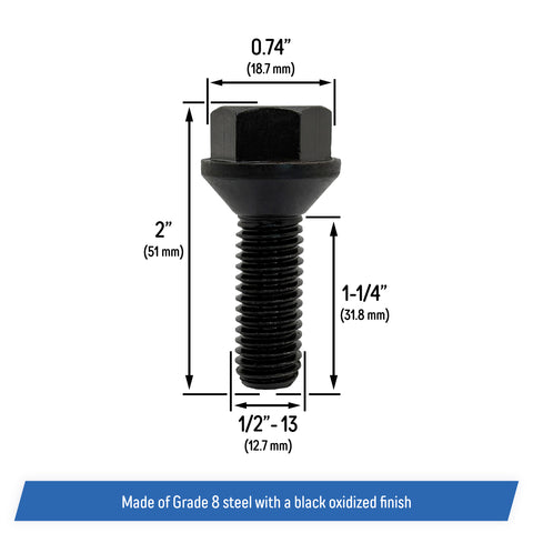 - Made of Grade 8 hardened steel with a black oxidized finish