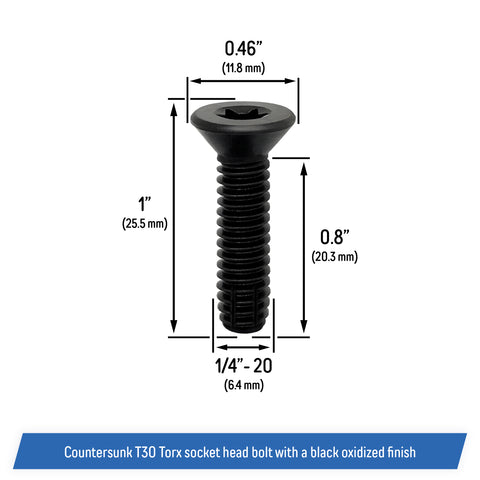 - 1/4"-20 x 0.8" countersunk T30 Torx socket head bolts