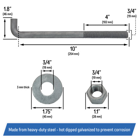 Note: We also offer 8-inch, 12-inch, and 14-inch anchor bolts, as well as 5/8" and 1/2" thickness!